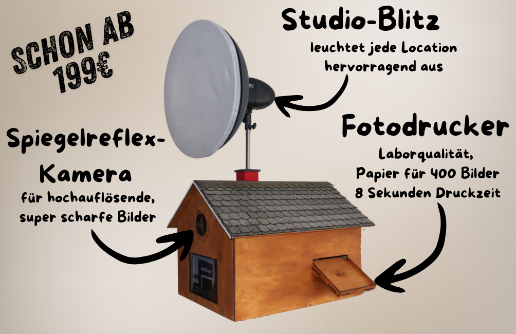 - Fotobox-Vermietung: Wir bieten moderne Fotoboxen mit hochwertiger Kamera- und Drucktechnik. Die Handhabung ist kinderleicht und die Ergebnisse sind beeindruckend.