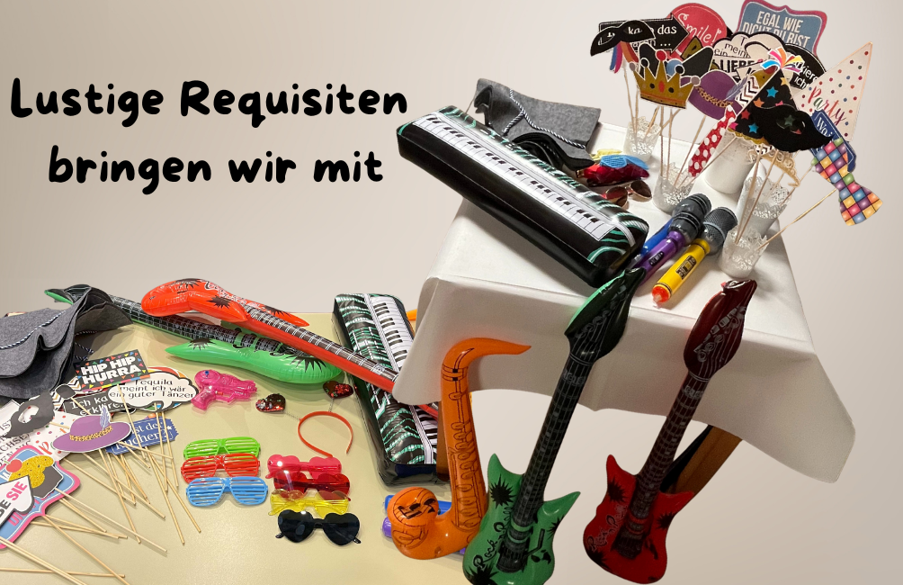 - Lustige Requisiten legen wir dazu, damit die Fotobox auch ein großer Spaß wird.