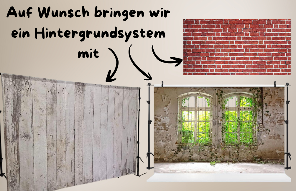 - Auf wunsch bringen wir auch einen Fotohintergrund mit.